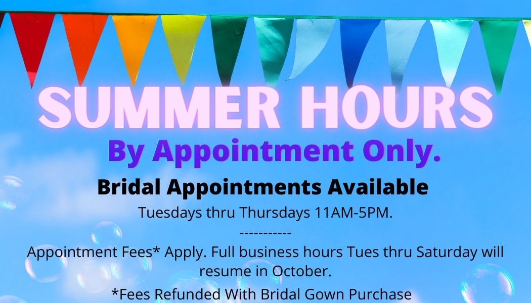 Summer Hours - Open By Appointment Only, Tuesdays thru Thursdays.