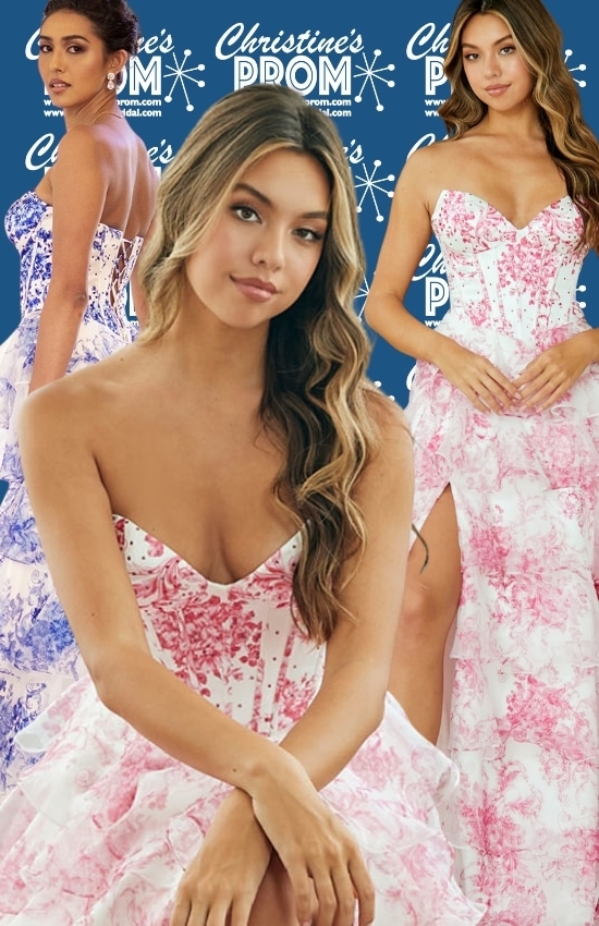 Christine’s Bridal and Prom features prom dresses with all of the latest trends. Chunky stones, gorgeous prints, and bright solids are some of the trends that the 2026 collection includes. Our gowns have always been gorgeous, but this year we have has stepped up our game! We offer a collection of bright ballgowns, sophisticated solids, and cute cocktail dresses that have become the #1 collection for prom in VT and NH! Swirling prints and dramatic back details are also hot for the prom 2026 collection. Two piece gowns are the hottest new trend and have been seen on many Celebrities and Red Carpets all over the world. You too can look like a star in a our dresses!